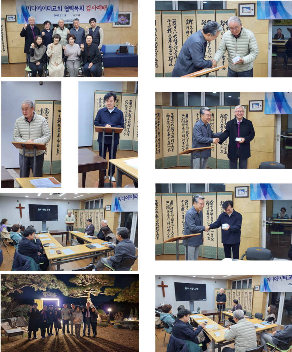 명승원에서 함께 감사예배를 가졌으며, 성도들과 함께 축하 감사기도를 하였습니다.